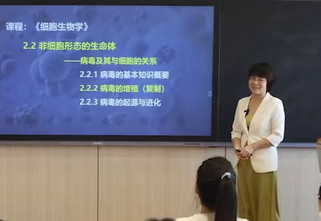 细胞本身看不见摸不着,非常抽象,为了让学生们更好消化这门课,她不断创新教学方法,开展丰富多彩的教学活动,比如,美丽的细胞绘画评比、细胞模型的手工制作、病毒和人类关系辩论赛。