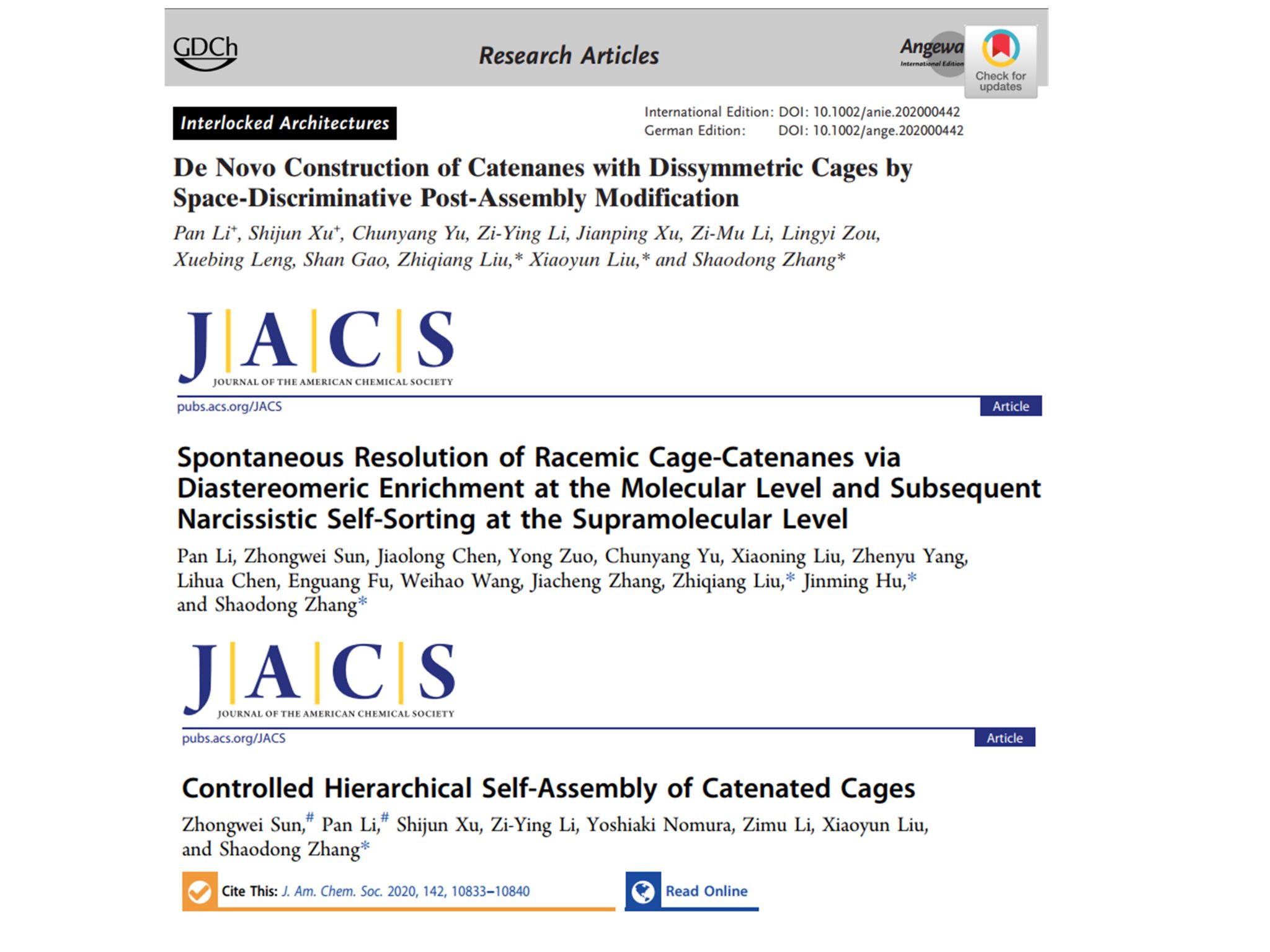 开展科学研究十多年来,李攀日积月累、持续付出,以坚持不懈的精神品质,在超分子化学领域结出“硕果”:以第一作者在化学领域顶级期刊Journal of the American Chemical Society(影响因子15.0)、Angewandte Chemie International Edition (影响因子16.6)发表研究论文;以共同一作在中国化学会旗舰期刊CCS Chemistry (影响因子11.2)和Journal of the American Chemical Society发表论文。